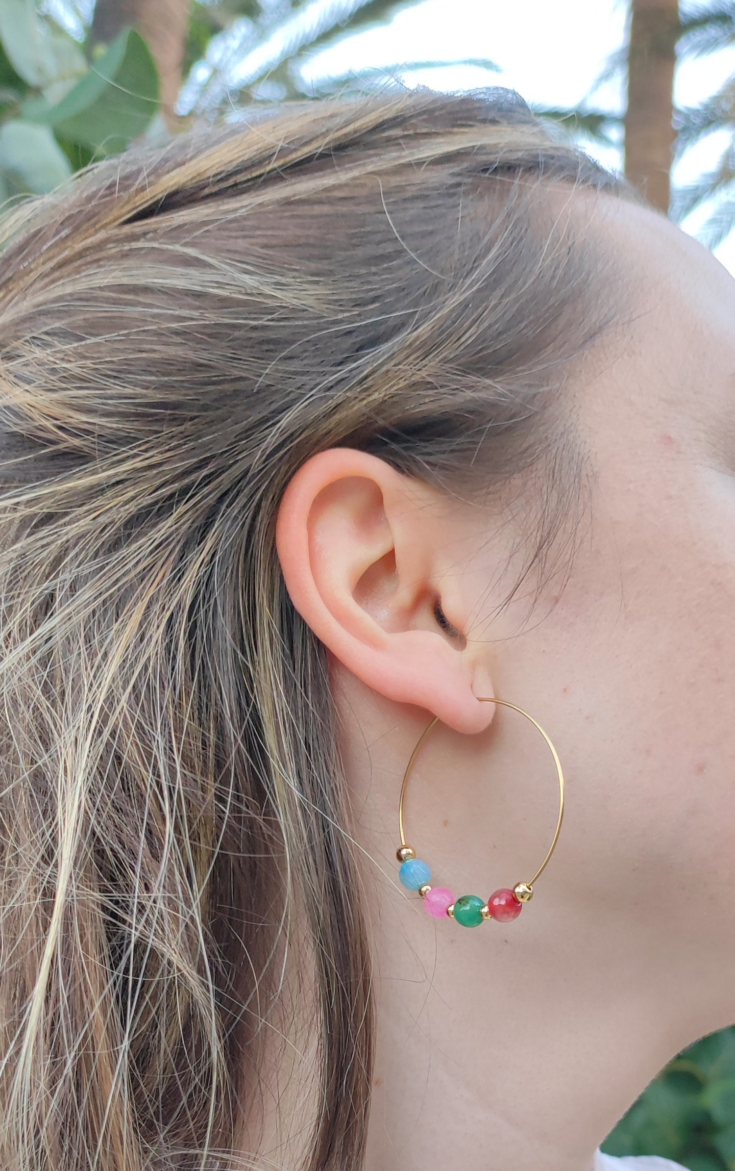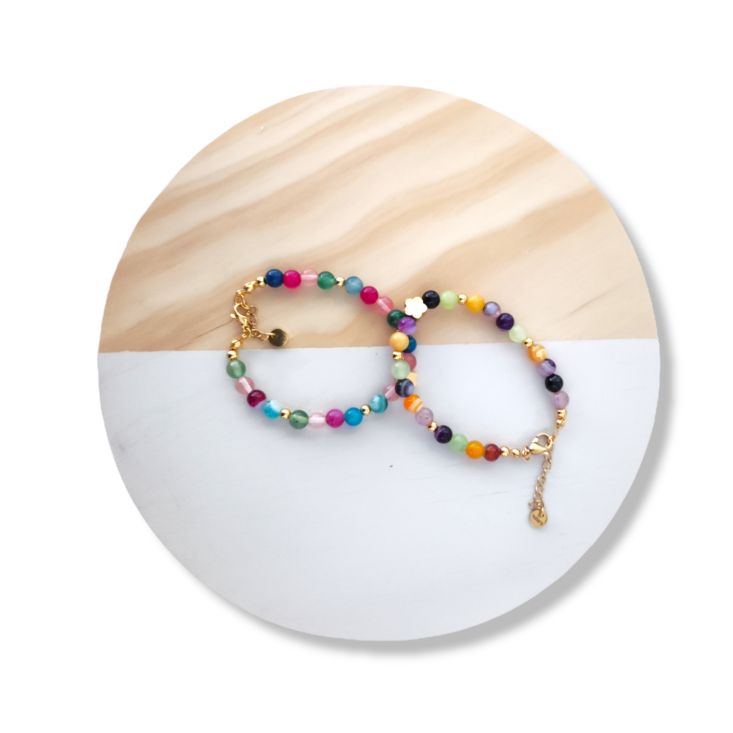 Realizadas con piedras naturales, ágatas, turquesas, etc...engarzadas en cadena de acero con baño...