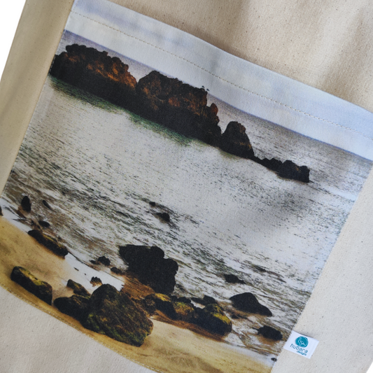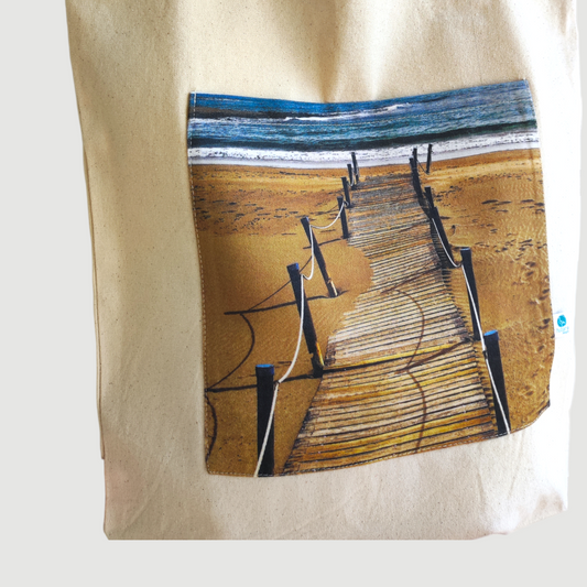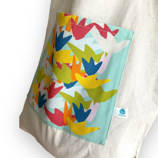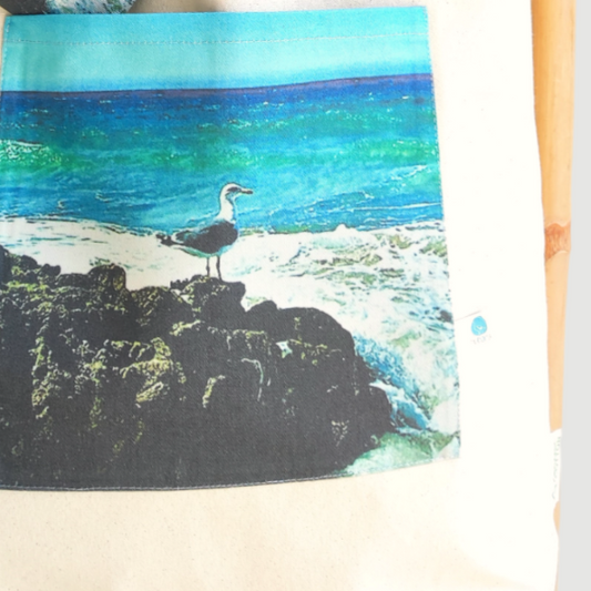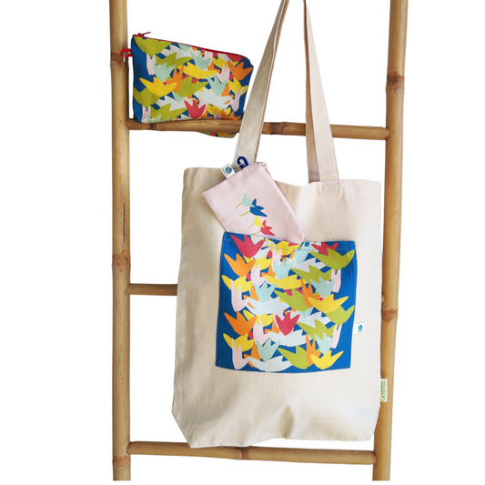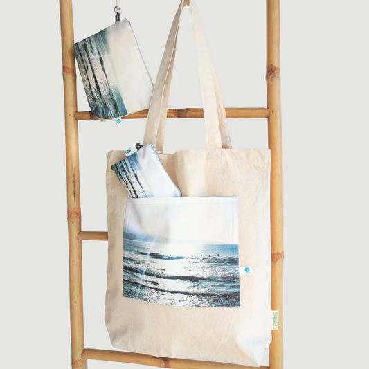 Disfruta de nuestros diseños en los amplios y cómodos totes de algodón orgánico.